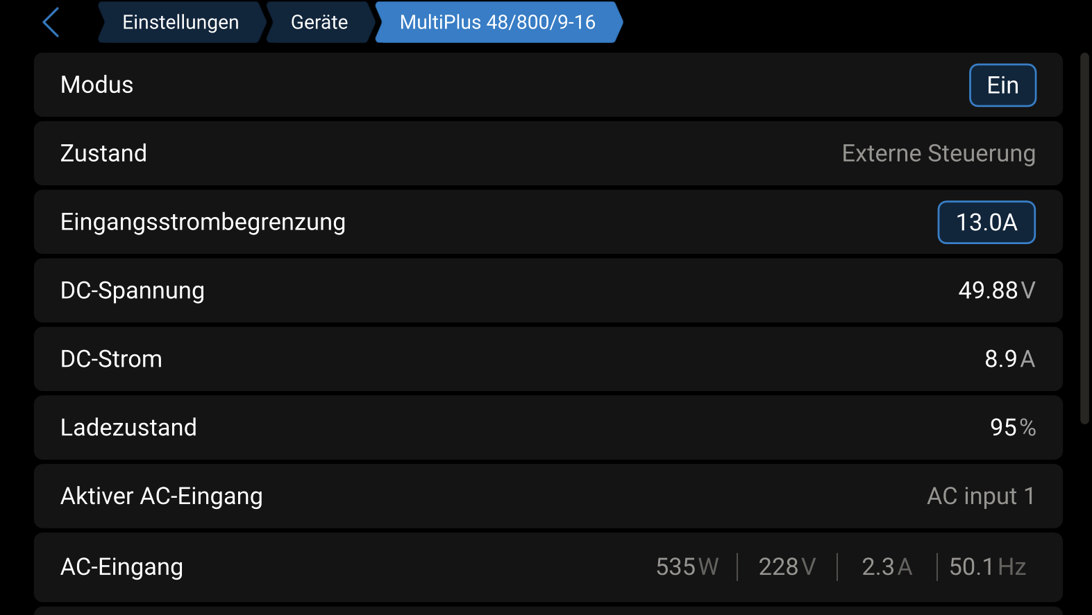 I’m considering adding a second Quattro 10 kVA for extra charging capacity and as a spare. The plan is to parallel it with the existing unit but leave the new one in charger-only mode (set via the physical switch and the VE.Bus setting). This also lets me send the original unit for repair (AC-in 2 failed within the first year).