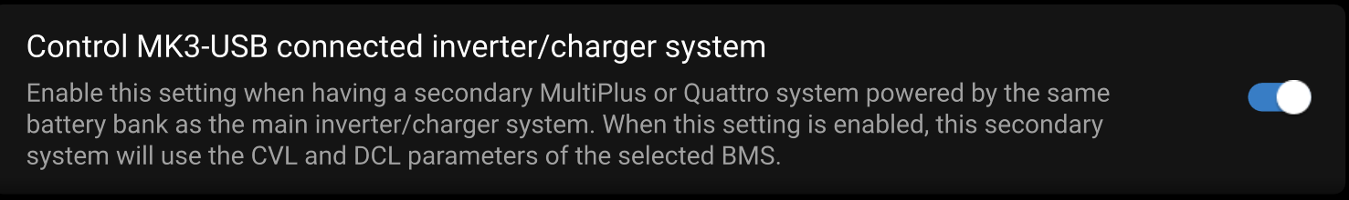 If I parallel the two Quattros, set the second to charger-only, and connect to the Cerbo GX as normal, will the system automatically handle house loads/export via the original unit while the second unit contributes charging only? And if I raise the charge limit (e.g., to ~13 kW) during the off-peak window, will the charge current be shared correctly between both units?