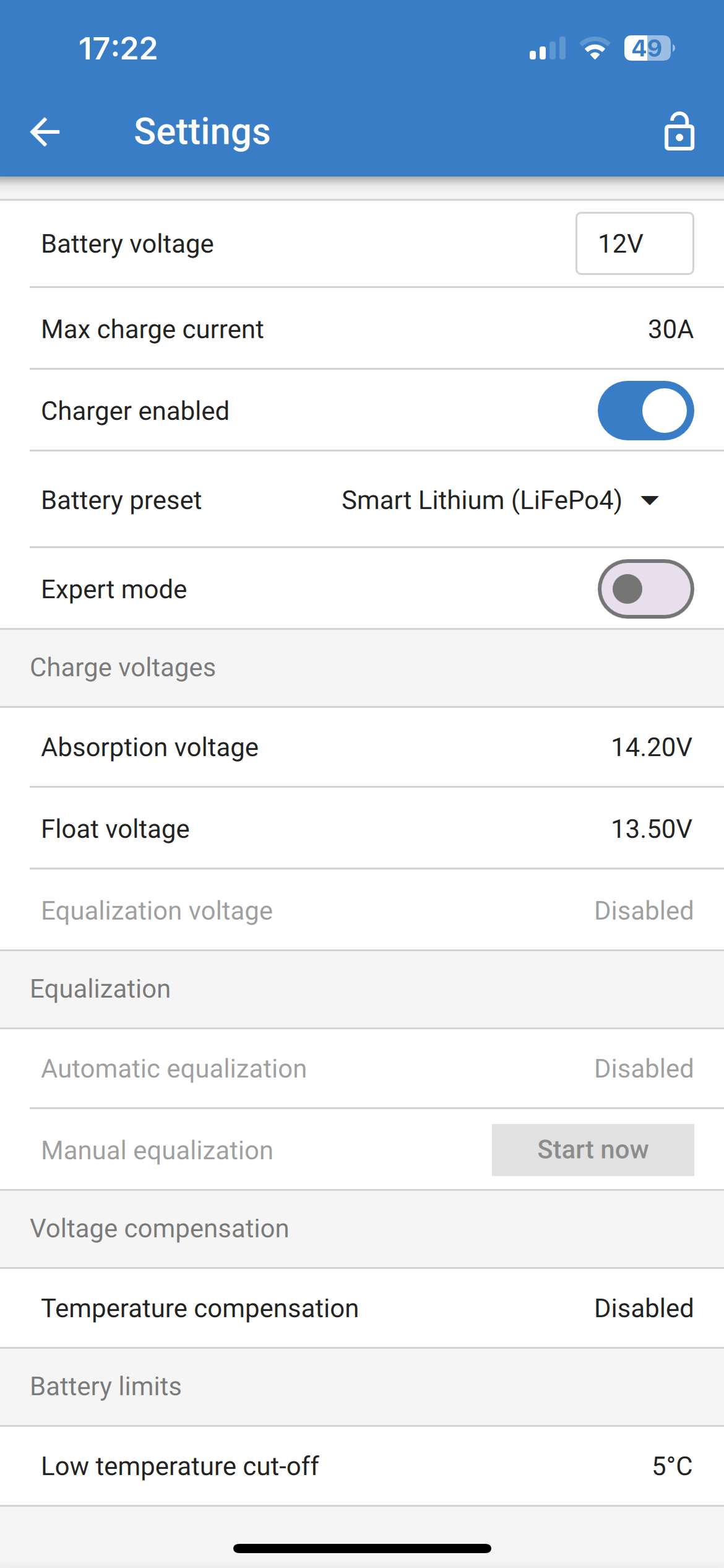 Hi, I have a lithium battery and MPPT 30/100 and a DC to DC charger the battery is showing 100% but the DC to DC charger and the MPPT are still in bulk. Is there a reason for this? Does it need to get up to the high voltage first and then drop down