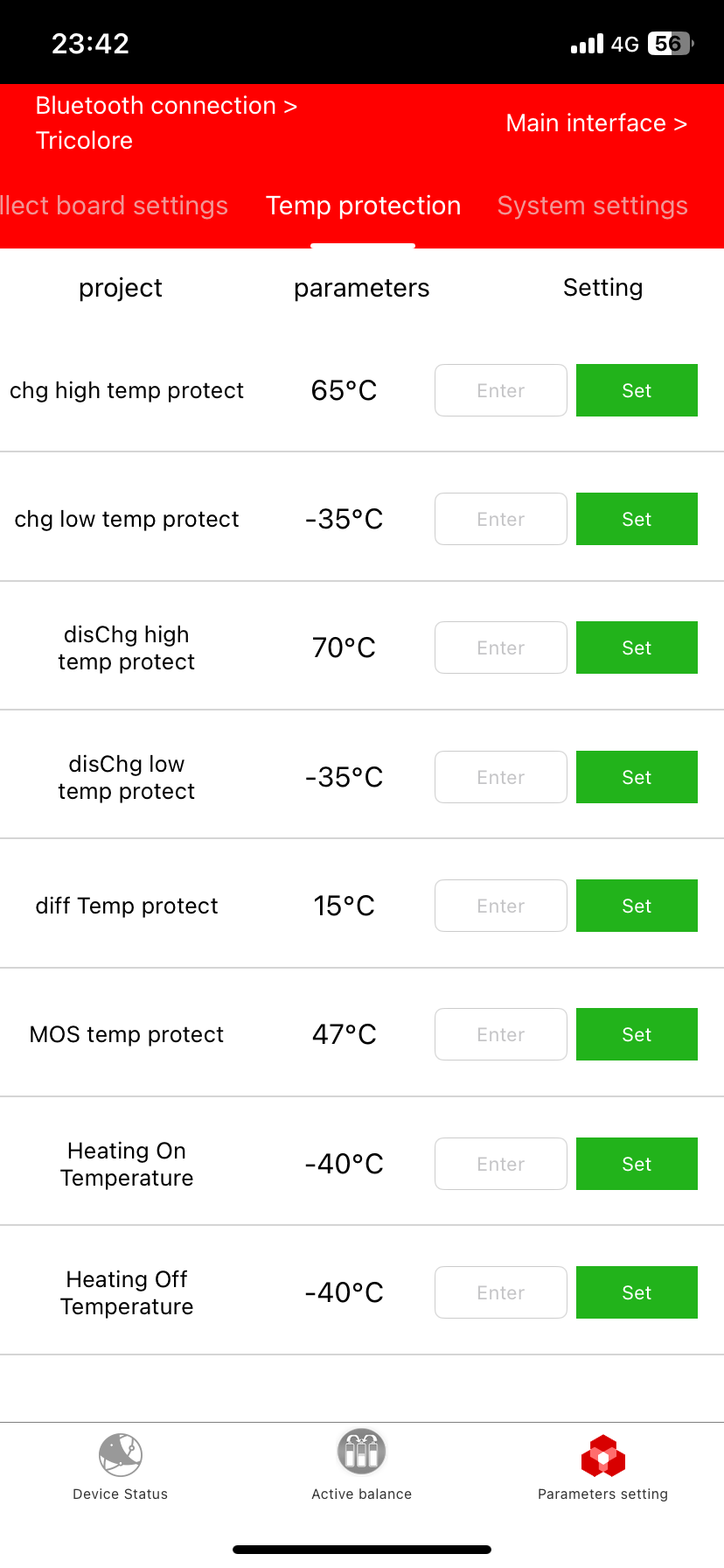 Some of your settings seem to require a look at eg: ovp 3.7v ( bit high? Battery specs unknown), low temp protect -35c ( bit low, battery specs unknown), mos temp protect 47c ( seems low, but Daly is unknown to me)