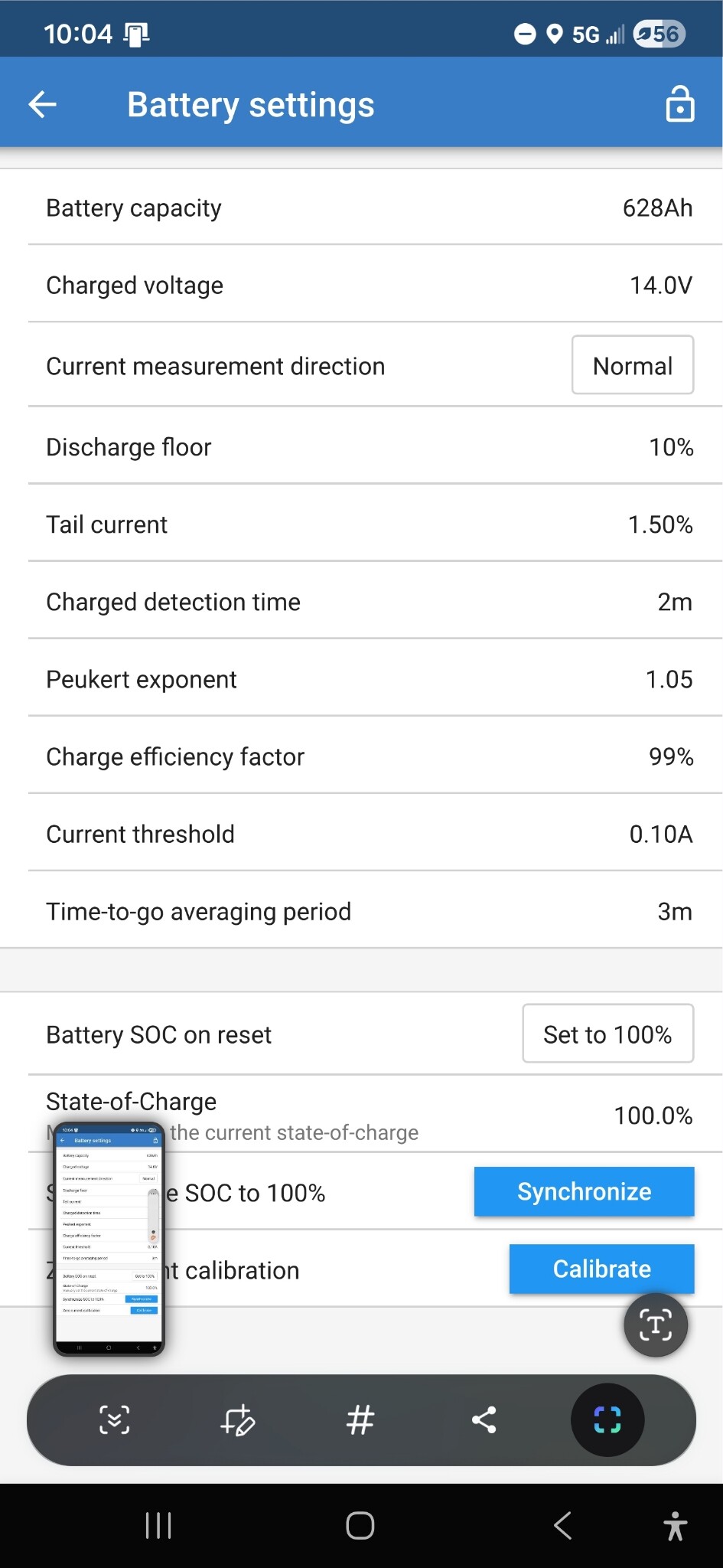 Originally in 2020, the Multiplus was programmed by the company in Reno NV that I bought it from. I informed them of the two Renogy 170Ah Li batteries that powered my system. After 6 years of use, one of them lost about half of its capacity. The failed batter was the lead negative in the parallel system. I suspect it was charging related stress, but I have no real way of determining that. This lead me to purchasing 2 of the WattCycle 314 Minis.