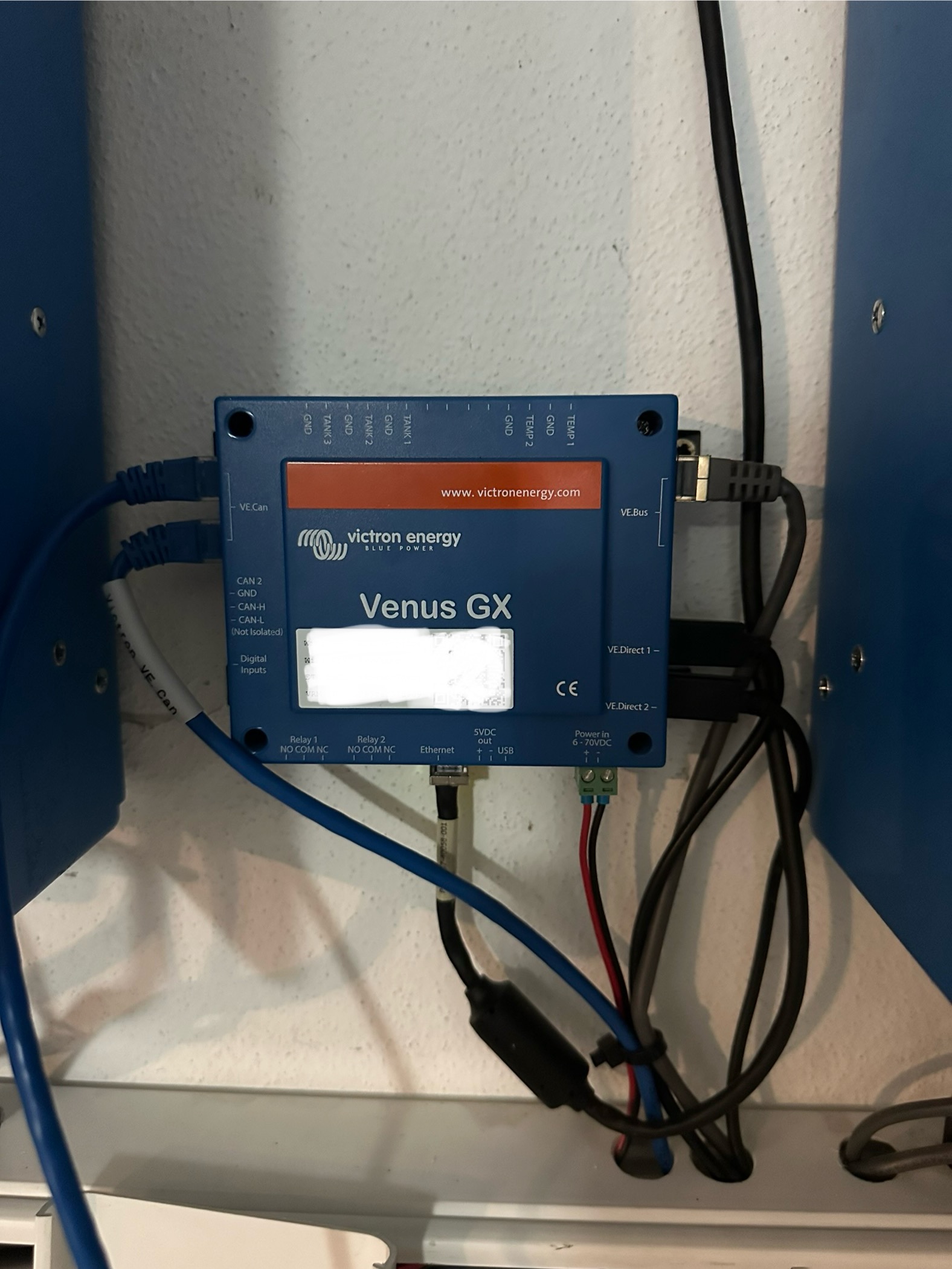 I have 2 MPPTs (Blue Solar) which are connected to Venus GX via 2 ve.direct cables. Now I want to add the 3rd MPPT, but Venus GX has only 2 ve.direct inputs. I bought RJ45 Victron cable to switch the connection via ve.can (picture below). There are also 2 inputs for ve.can in Venus GX. 1 is already used for JK BMS. I wanted to test the ve.can connection with my already installed MPPT. So I disconnected the ve.direct cable from MPPT (I left the other end of ve.direct cable in Venus GX) and connected the RJ45 cable to MPPT and Venus GX. But the Venus GX did not recognise the MPPT. I thought it is because of the terminator, so I attached 1 terminator into the MPPT. I couldn’t add the second terminator to Venus GX as all ve.can inputs are now occupied. But Venus GX did not recognise the MPPT either. I tried the same excercise with the other MPPT but same result.