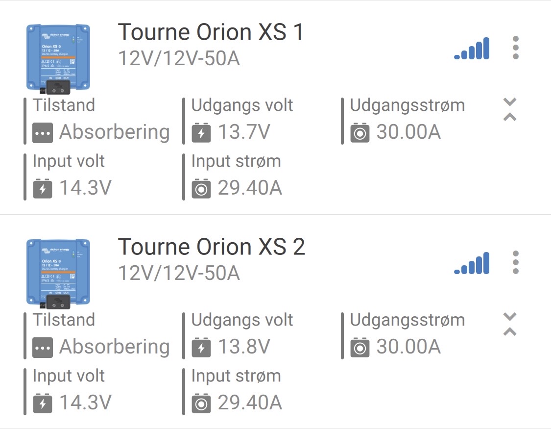 but everything looks ok now. Both XS are charing in Bulk with 30A up to 14.2V and going into Abs.