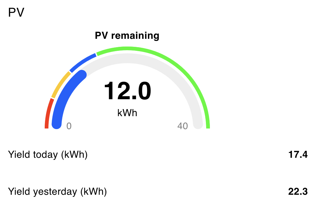 Attached is a flow for a PV widget that shows the remaining PV forecast for the day, as well as the yield today/yesterday.
