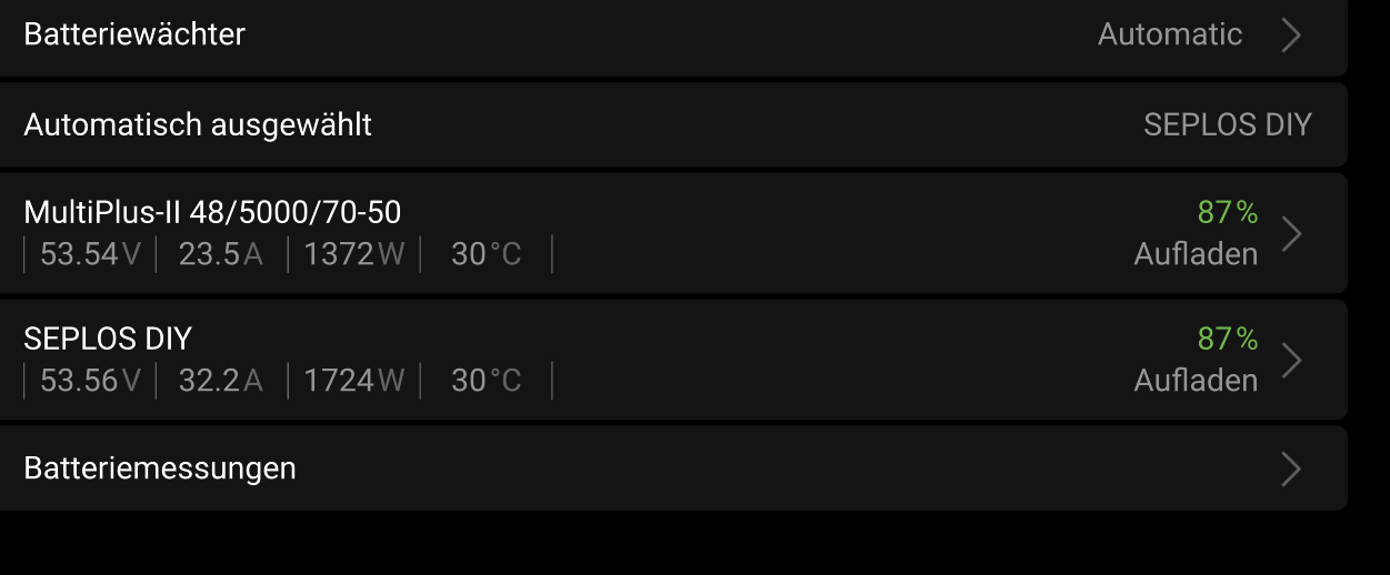 Die Batteriemesswerte mal ggf. mit den vom BMS überprüfen (hast du hier nochmal einen eigenen SmartShunt, oder basiert die Anziege auf den Werten aus den BMSen?)