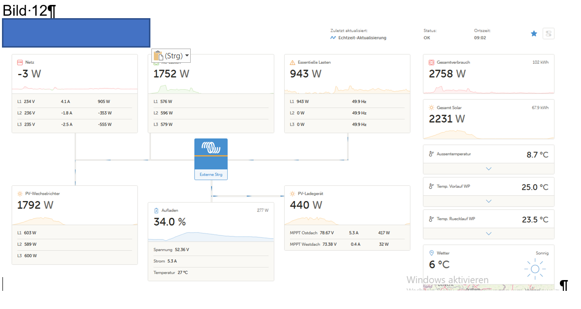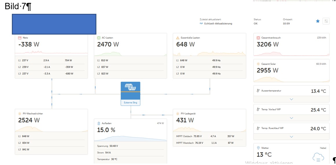 Im VRM-Portal wird ja auch der Wert „Gesamtverbrauch“ und „Gesamt Solar“ angezeigt. Bei „Gesamt Solar“ ist es klar, Addition der PV-Anlagen und PV-Lader (also die beiden MPPTs). Ich verstehe bisher aber nicht die Logik, wie sich der Wert „Gesamtverbrauch“ aus den vorhandenen Einzelwerten zusammensetzt.