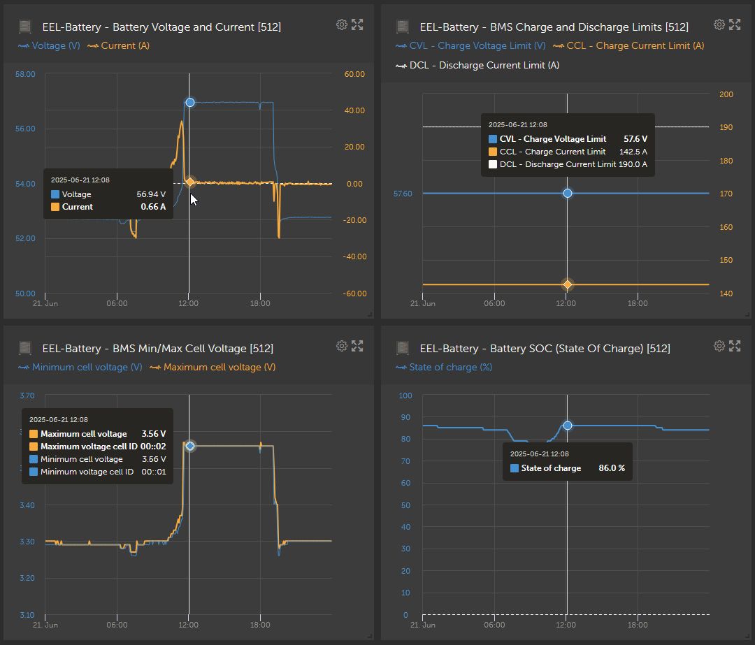 So my assumption is, that JK introduced a factor which is multiplied to the real current measurement only in discharge mode. Their intention was to calculate a more precise SOC value, and they achieved that with this “dirty” trick. SOC values are indeed much more precise now, but at the cost of displaying wrong discharge currents.