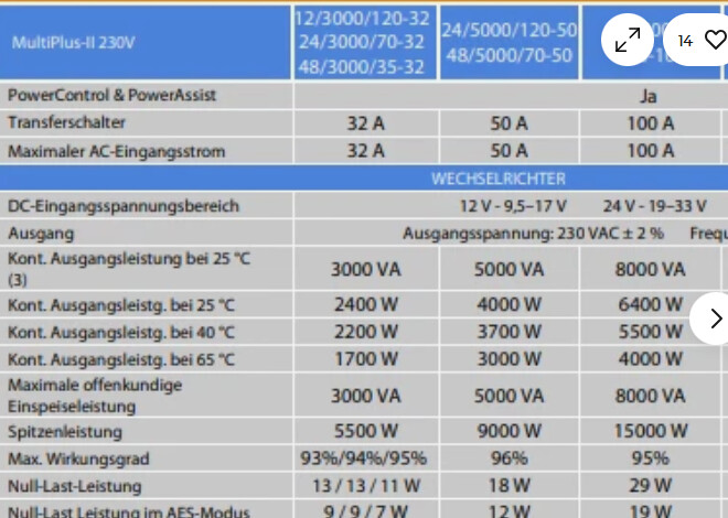 Die 7,2 kw sind auch eine Annahme der ich vor 2 Jahren aufgesessen. Ist nicht so ….Wie Matthias schon schreibt…..35A je 3000er. Und das auch nur unter optimalen Bedingungen sprich nicht zu warm. Wenn man genau liest steht da auch maximal, als bei verbrauchsspitzen.