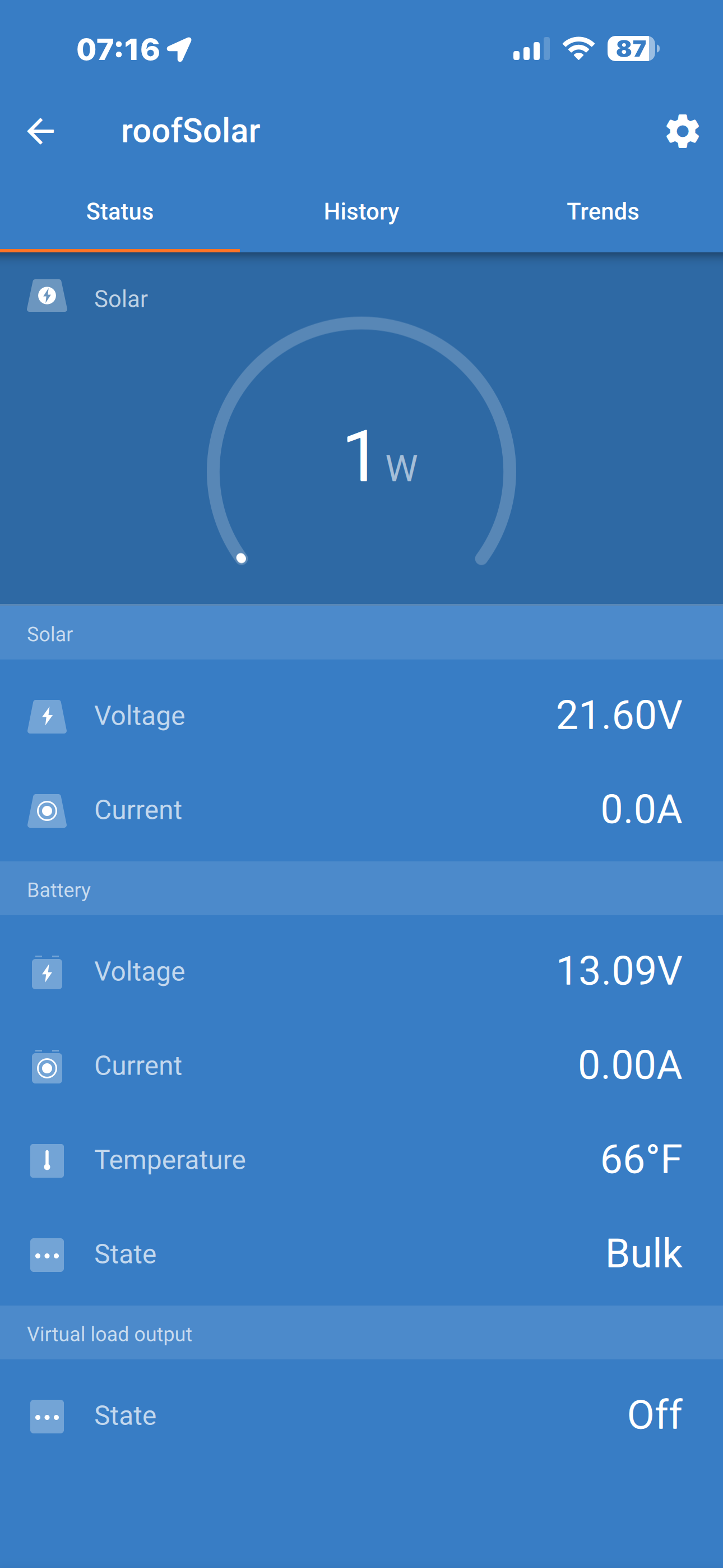 I noticed we weren’t getting any solar charge when we were off shore power so I had enabled DVCC.