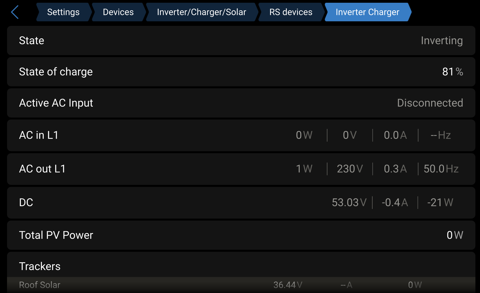It seems the Multi RS Solar 48/6000 does not publish any CAN messages to the CAN network, connected to Cerbo and NMEA out is on, but using NMEA Reader, do not see any CAN messages of Solar Output, AC Input, AC Output.