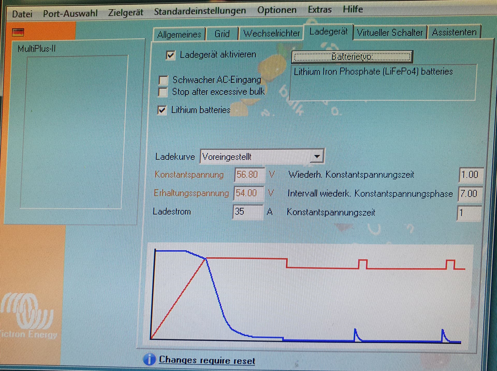 Hallo zusammen. Ich bin neu hier im Forum und hoffe ihr könnt mir weiterhelfen. Mein System ist einphasig , ongrid mit einem Multiplus2, 48/3000. Nchdem meine BYD LV 3,5 kaputt gegangen ist, habe ich jetzt eine BYD LVS 4.0 als Ersatz verbaut. Hat hier vielleicht jemand von euch Erfahrung, wie ich den Multiplus jetzt neu konfigurieren muss. Max-min Zellspannung, Sustain Spannung usw? Weiß von euch zufällig auch jemand wie viele Zellen die LVS 4.0 besitzt.