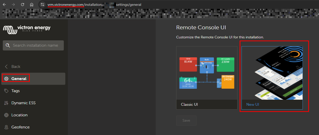 login to VRM → select installation → Settings → General