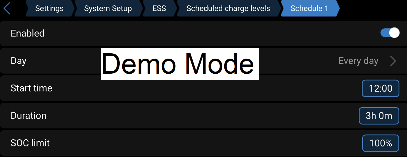 As you can access ESS on your system and the menu does show scheduled charge levels when I use the “demo mode” on mine, I probably have an incorrect setting somewhere that I need to sort out.