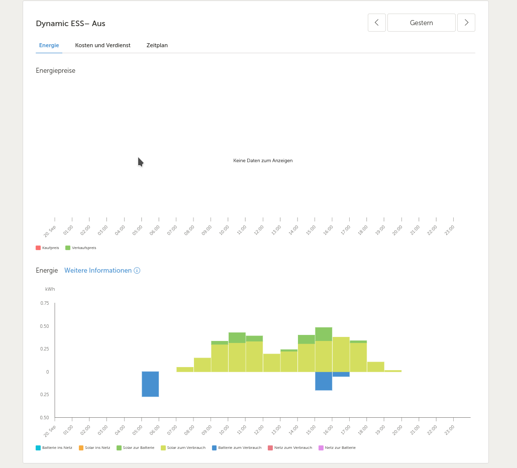 Das ESS macht auch alles was es soll. Nur in den Anzeige der Verbräuche unten da fehlen alle Netzdaten was Verbräuche angeht.