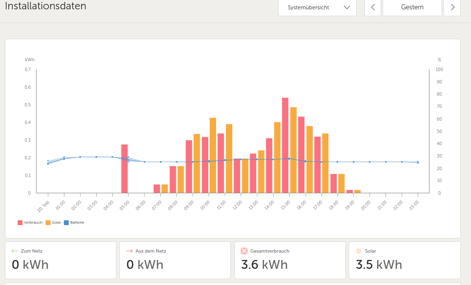 Hier nochmal die Ansicht von gestern zum Vergleich mit den Netz-Verbrauch der eigentlich 11,3 kWh gebesen sein sollte.