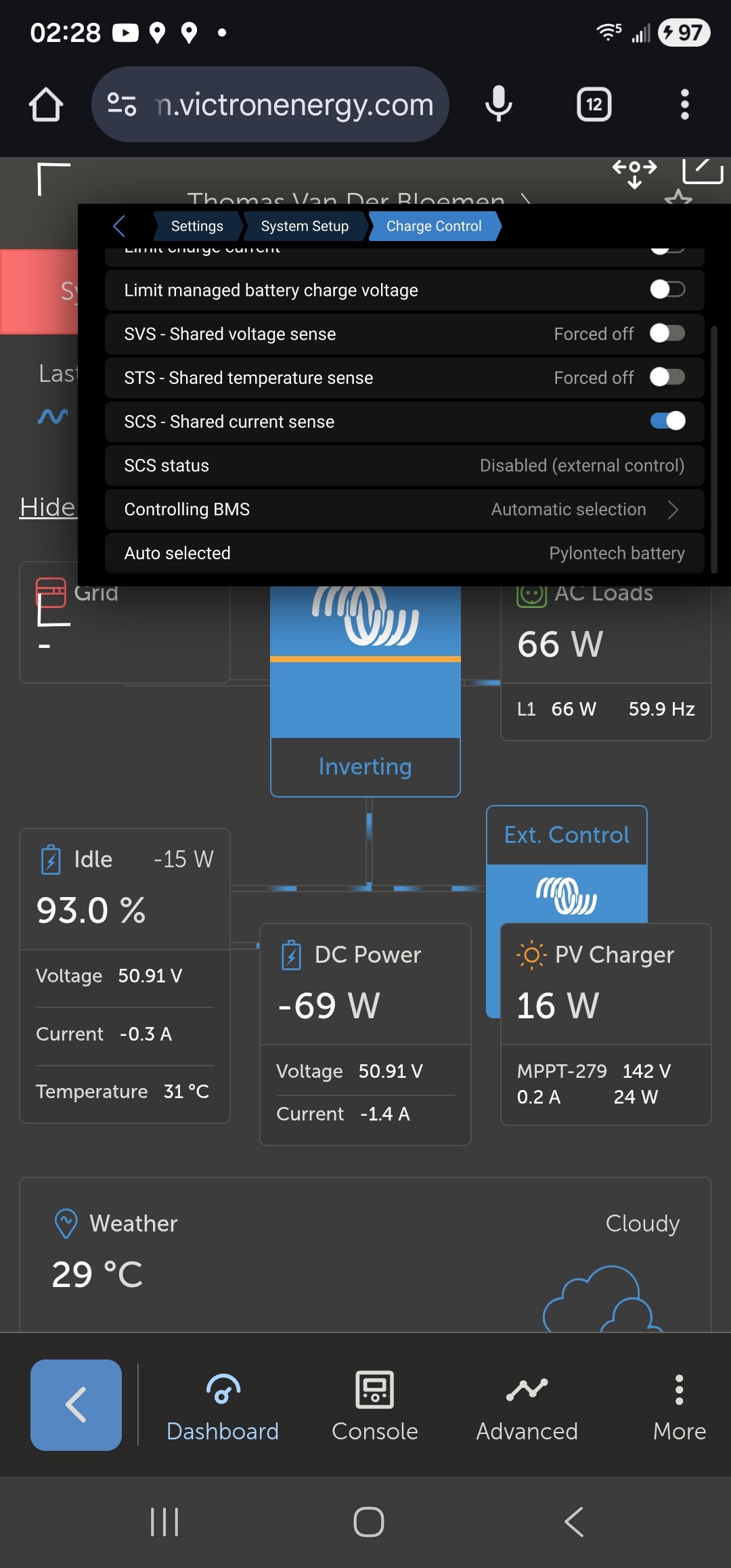 Ah wait, DVCC should already be “Forced On” with Pylontech - then just make sure, that the Pylontech is selected as “Controlling BMS”. Default is “Auto”, may for whatever reason pick another Battery Monitor for control.