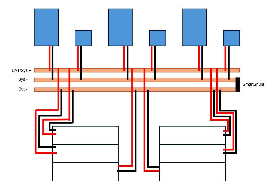 From the wiring unlimited it is recommended to take care of the shunt position and the order of the connected MP2, MPPT and Batteries.