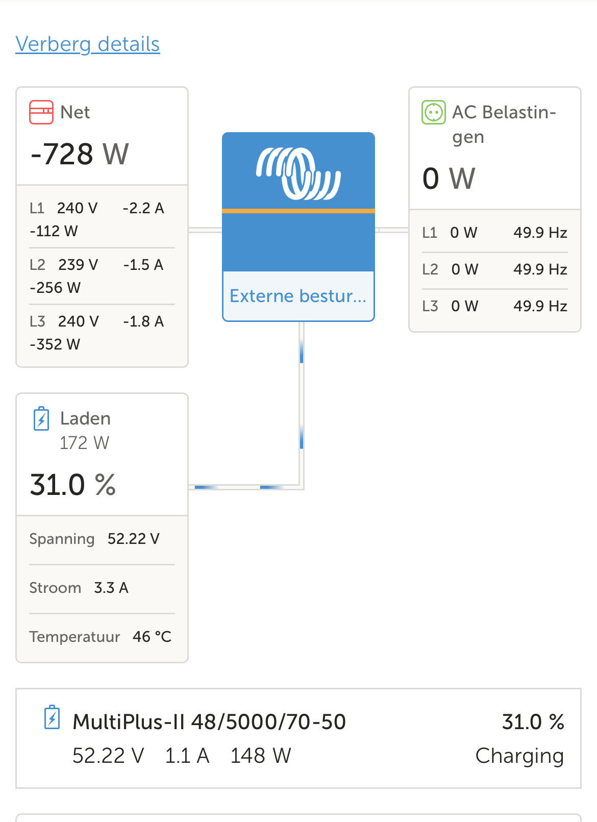 Result: using grid power, because victron couldt see there is solar power available, the easiest way to enable the connection then is to reboot my Cerbo.