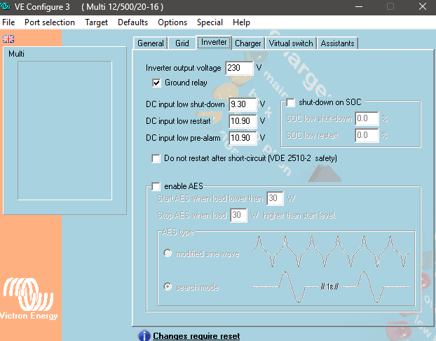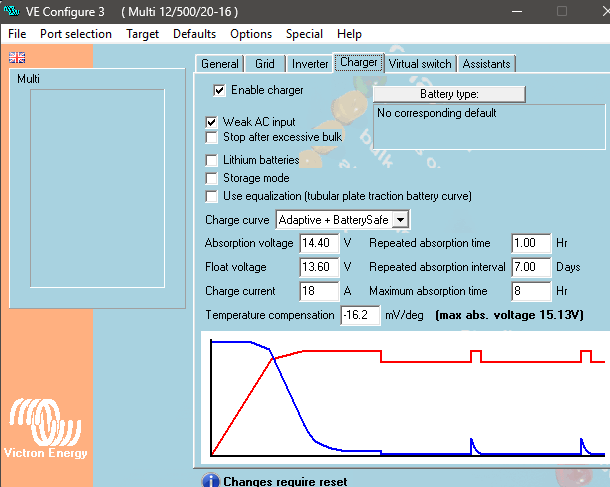 Settings (not connected to victron as exported the file):