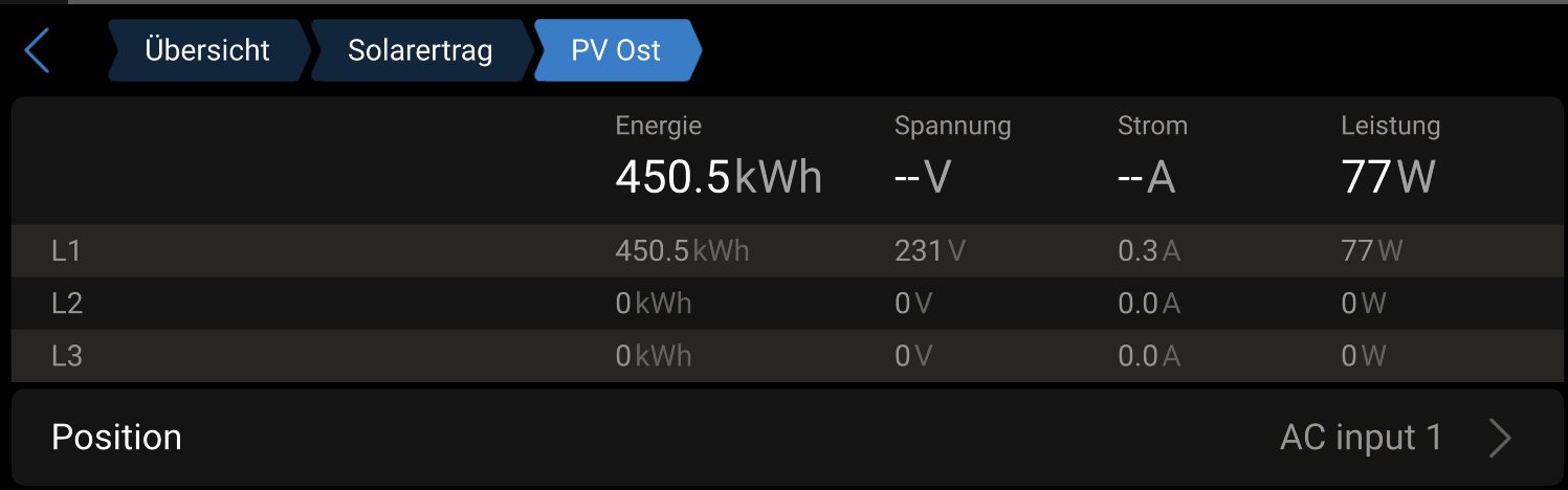 I see that the virtal Grid-meter has the same device instance (100) as this one phase PV device (als 100). From what I understood this device status should be unique. So maybe this is the problem, but I don’t know how to solve this.